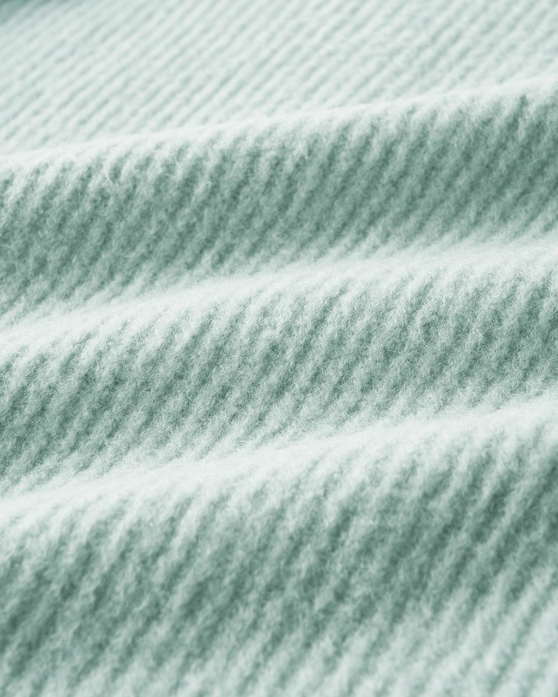 普段のサイズ:M 着用サイズ:M - とても軽くてあたたかい!お尻まですっぽり隠れる丈感ですが座ってもきゅうくつではない適度なゆとり感があります。袖丈は親指の付け根が隠れるくらいで折り返して着るのもよさそうです。ペールブルーはグリーンも混ぜたような優しい色合いで明るい気分になれそうです。