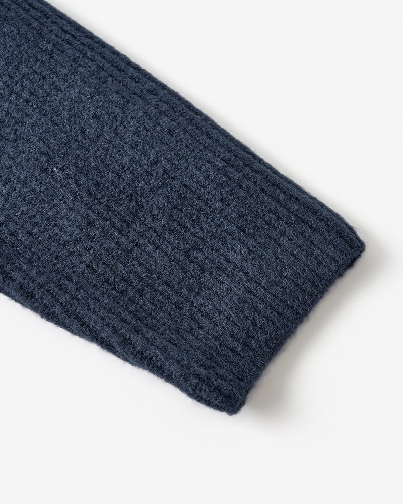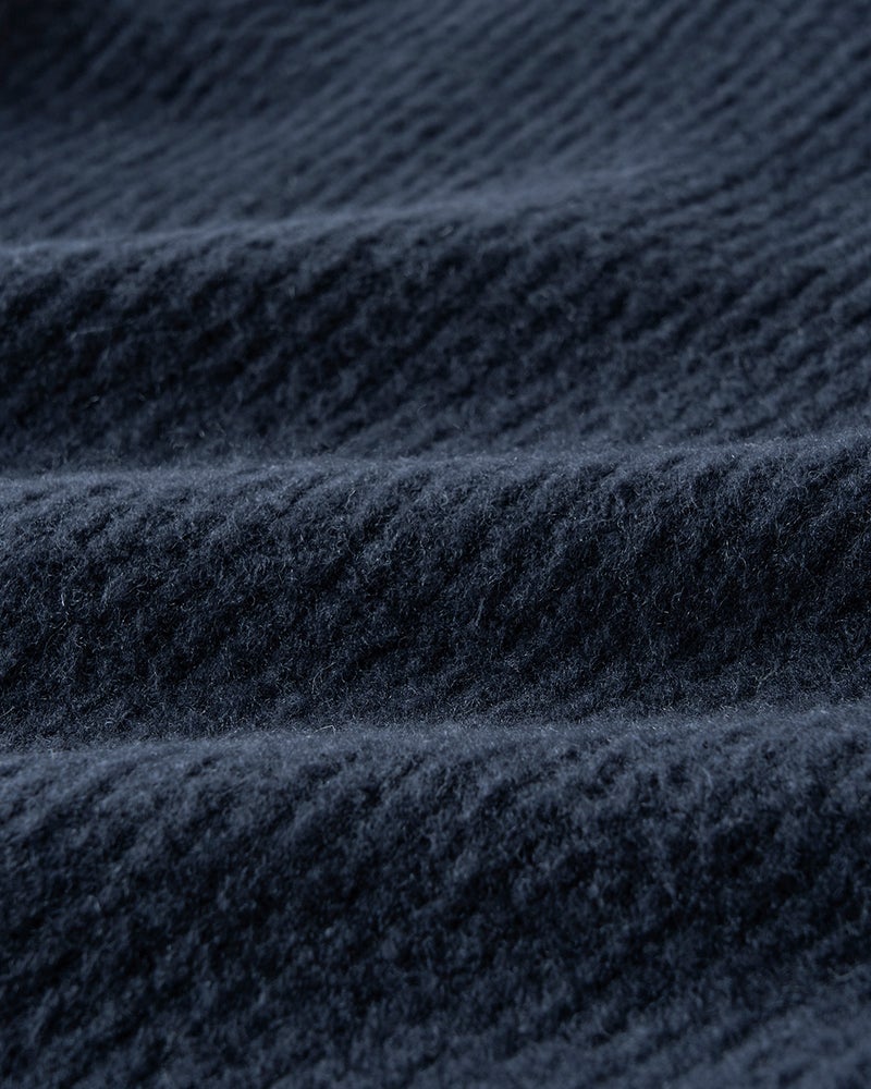 またこちらのニットはふっくらもちもちとした肌触りやお手入れの手軽さのための混紡の製品でございますが、反面、繊維の特性上特に乾燥の気になる季節には静電気が気になられたかもしれません。防止スプレーをご使用いただいたり、また綿など天然繊維のインナーと合わせてお召しいただくことで多少軽減されますのでお試しいただけますと幸いです。