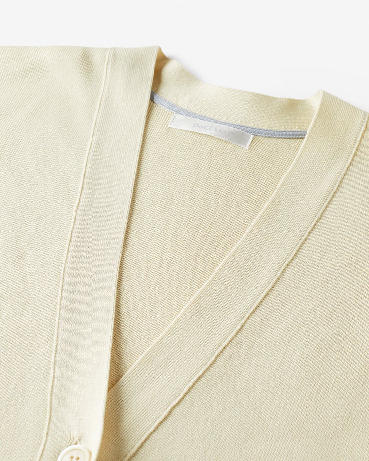 - ピンクのXXLを購入。Vネックの深さの加減が、Tシャツにもブラウスにも絶妙です。ボタン止めカーディガンなので、パンツの上に羽織ってボタンを総留めにすると、とてもスッキリ見えます。ピンクの色が春めいて素敵です。