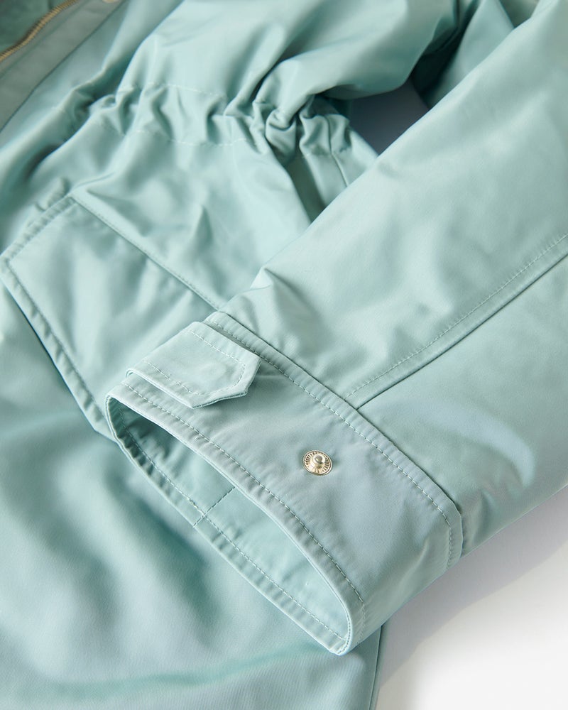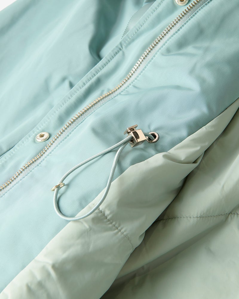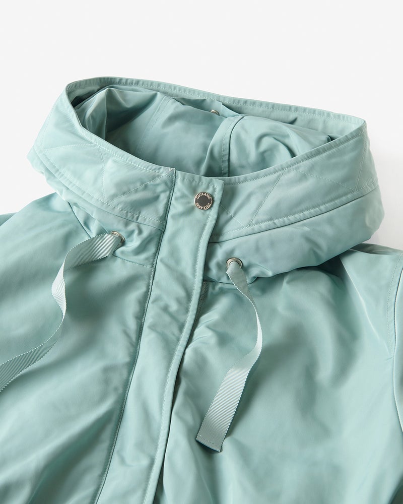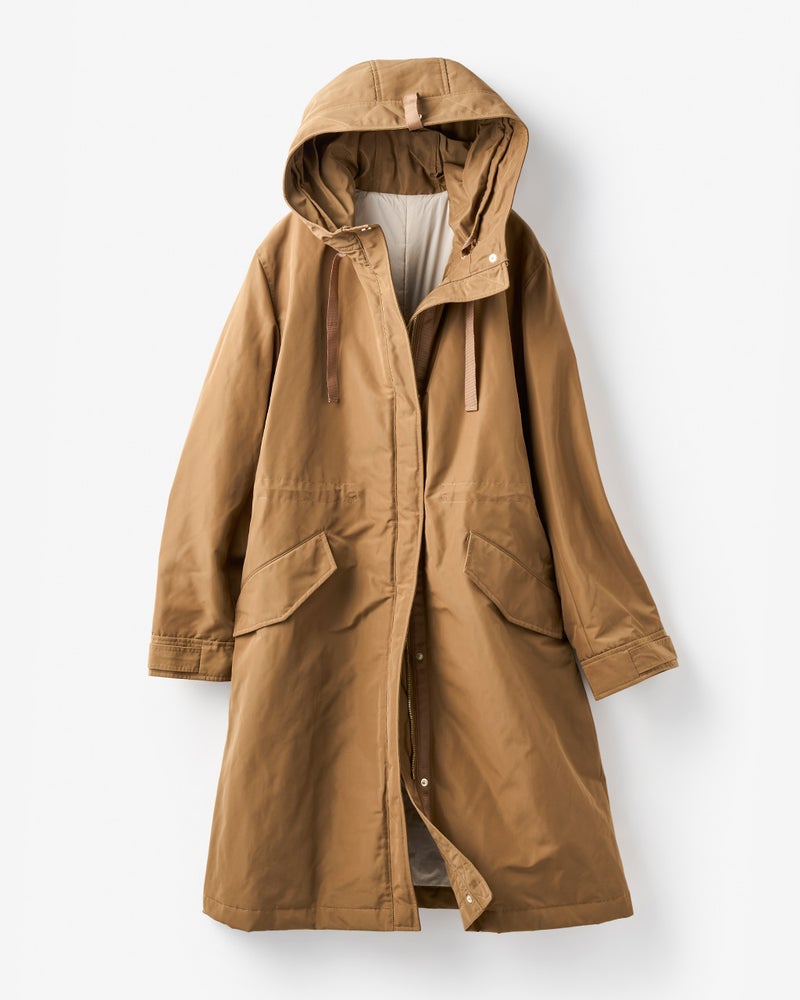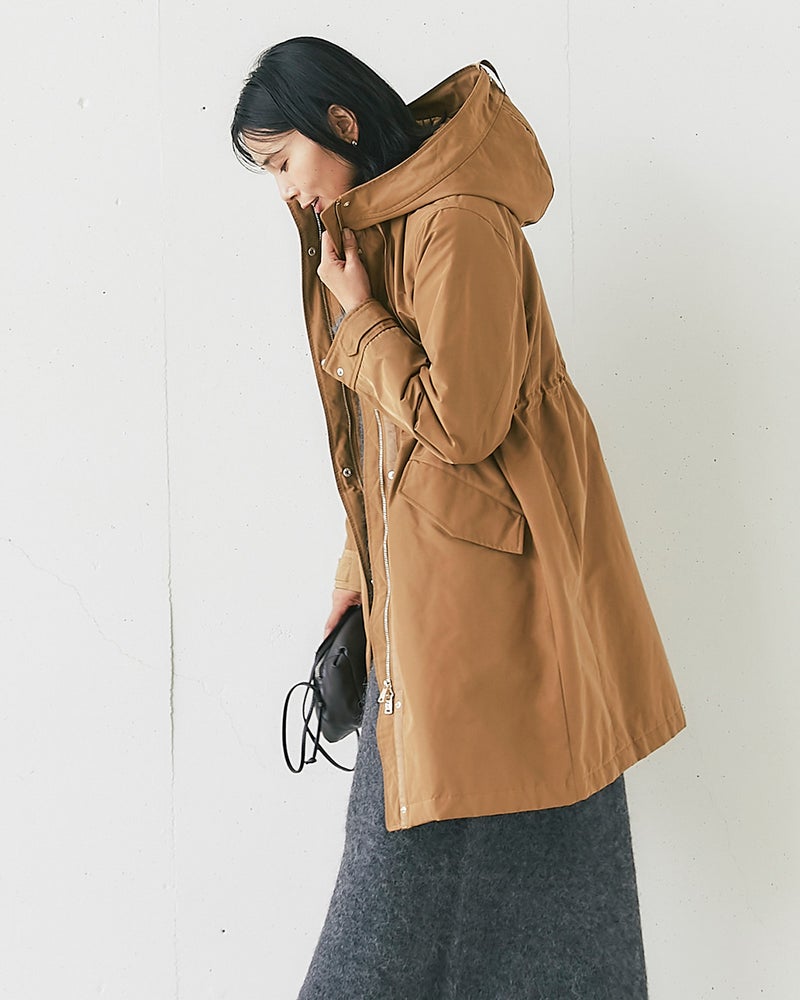 店頭のマネキンがキャメルを着ていて凄くキレイなラインでいつも通るたびに気になっていました。実際着てみると凄く軽く、撥水加工や油分を弾くコーティングもされているようで機能性も抜群でした。風も通さないのでこれからの季節重宝すると思います。ウエストが絞れたり、フードが折りたためたりとデザインも素敵です!ライトグリーンもキレイな水色という感じで暗くなりがちな冬でもキレイに着こなせます。気に入って同時にグレーベージュも買いました!他の色も欲しいくらいです。キャメルや黒も欲しいです。