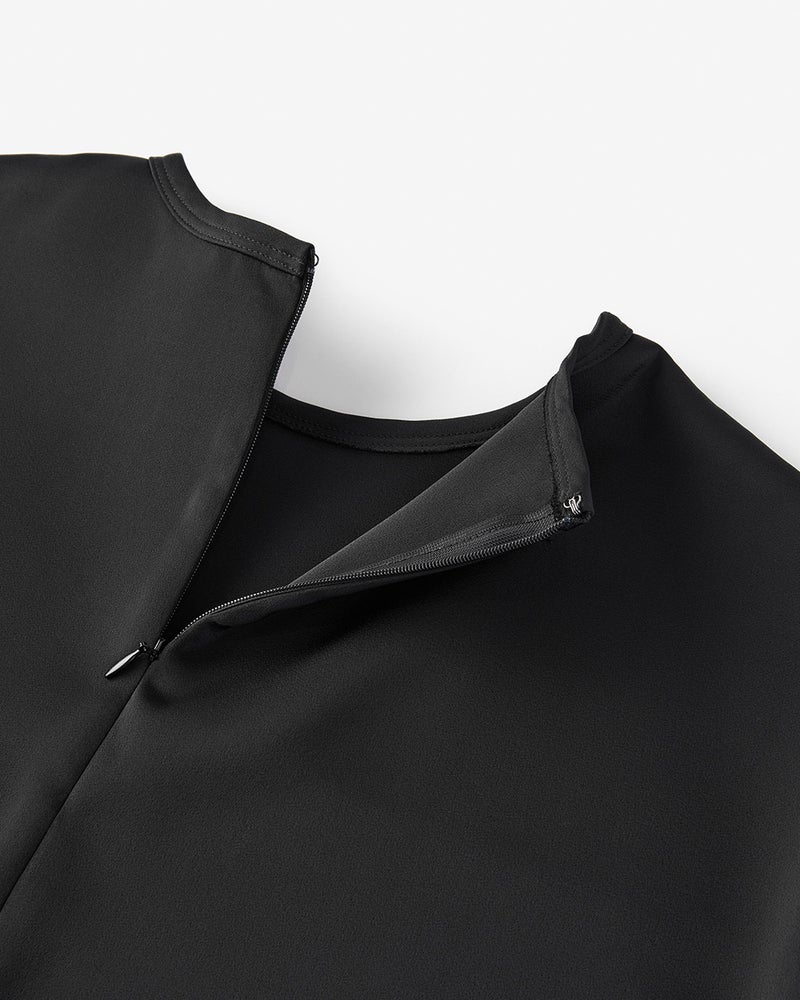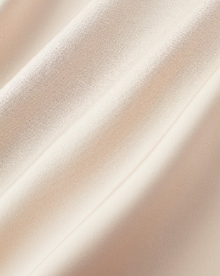 上品な艶を持つサテン生地に裏生地をボンディングした、「春秋冬3シーズン着られるサテン生地」。素材ならではのハリ感を活かしたシンプルなクルーネックトップスは、ゆったりフォルム×腰丈の抜け感シルエット。同素材のタックスカート(商品番号31102)とのセットアップならよそいき着に、デニムと合わせれば休日スタイルに、着回しにも大活躍。