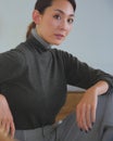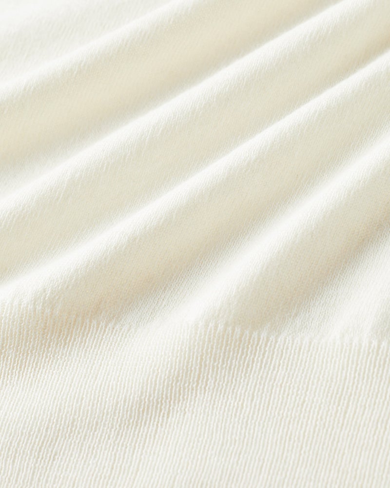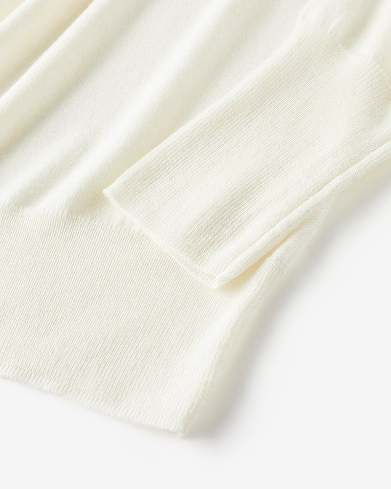 薄手で軽やかな着心地ですがウール混で暖かく、なめらかで優しい肌触りはカットソー感覚で着回していただけます。