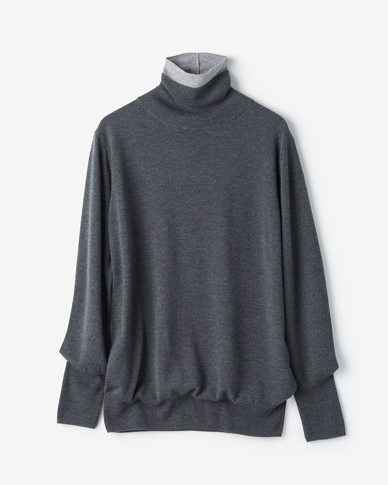1枚でも映えるバイカラーの二重タートル仕立て