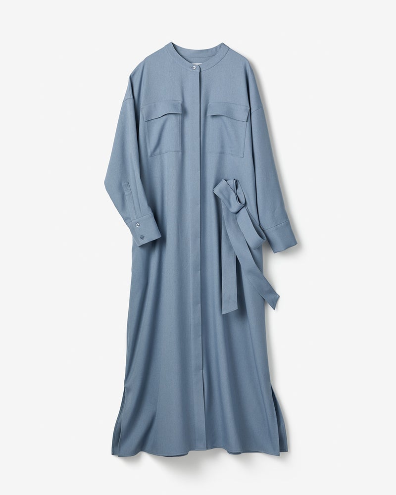 すとんとしたシルエットでシンプルに仕立てたバンドカラーシャツワンピは、サキソニー素材ならではのとろみ感で女らしさをプラス。共布ベルトでウエストシェイプしたり、インナーにタートルを合わせてレイヤーを楽しむなど、幅広い着こなしも魅力。
