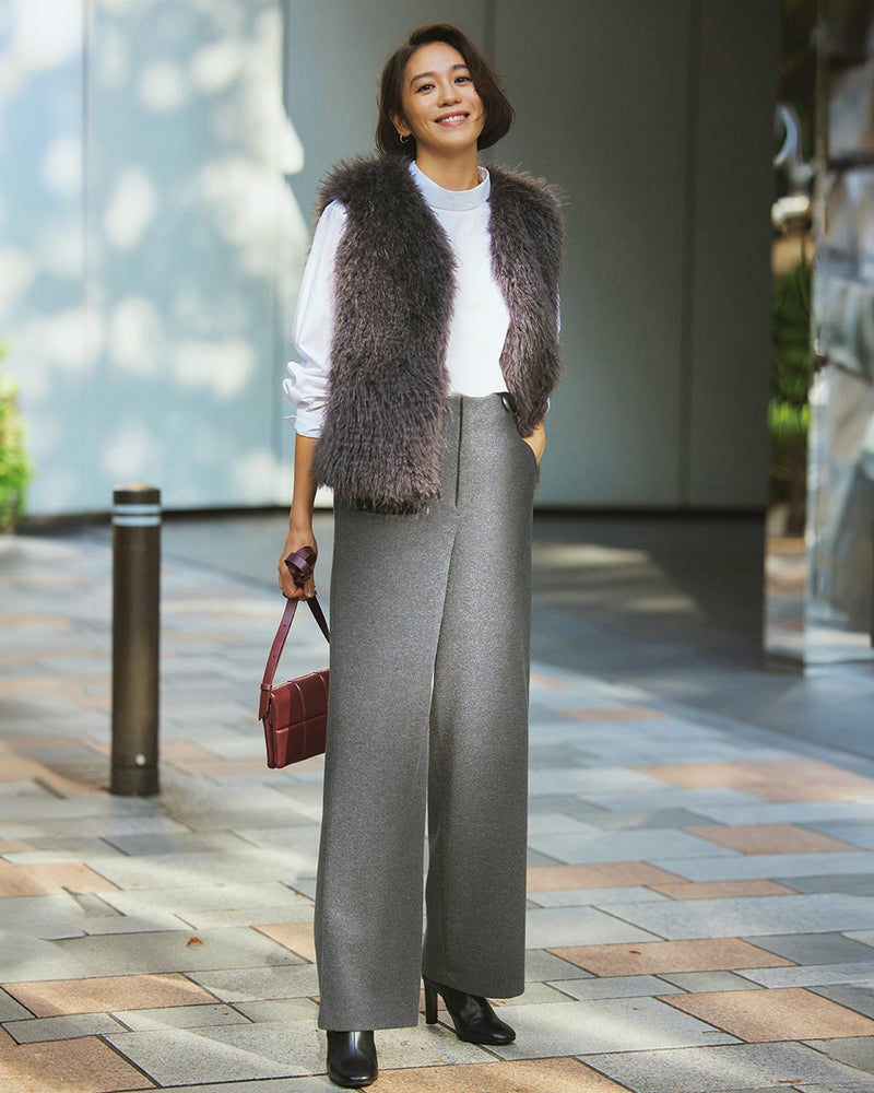 ぬくもり感があってチクチクしない、冬のお洒落パンツが欲しい。そんな声から生まれた、ふっくら暖かみがあり、まるでウールの見た目なのに肌に優しく、適度な伸縮性のあるパンツ。通常スーツパンツを仕立てている縫製工場に依頼することで、エレガントさに磨きをかけています。