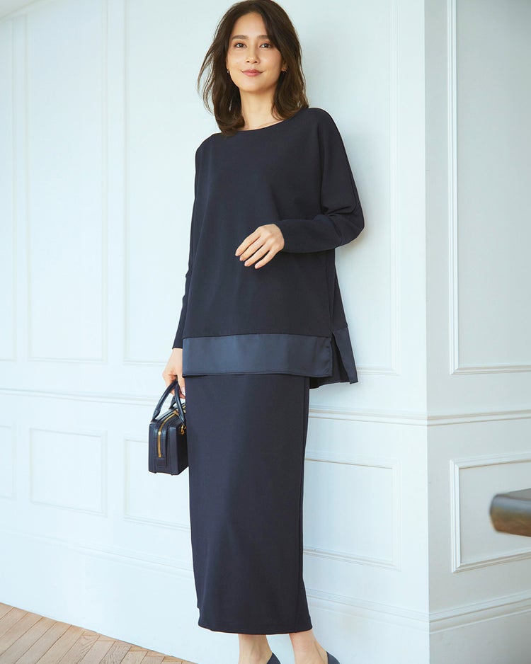• ストレッチジョーゼット・ナロースカート 詳細画像 ミッドナイトブルー 1