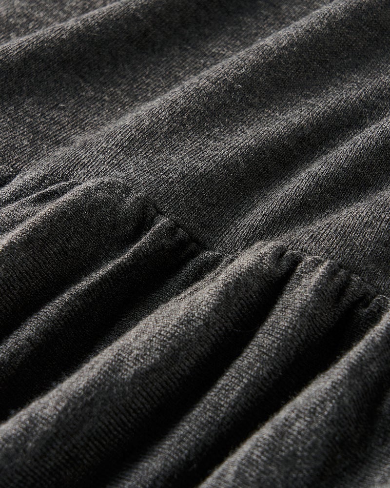 お腹を隠してくれチャコールグレーで大人可愛いスタイルになれます