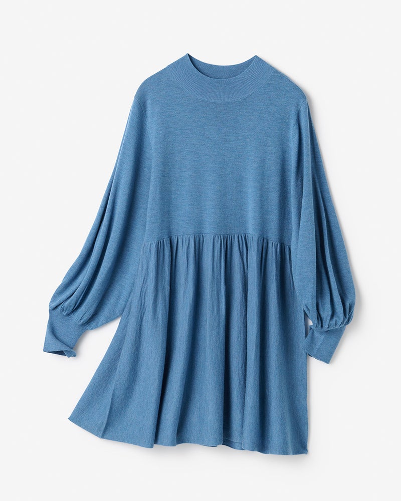 ウール混ハイゲージ・パフ袖フレアチュニック