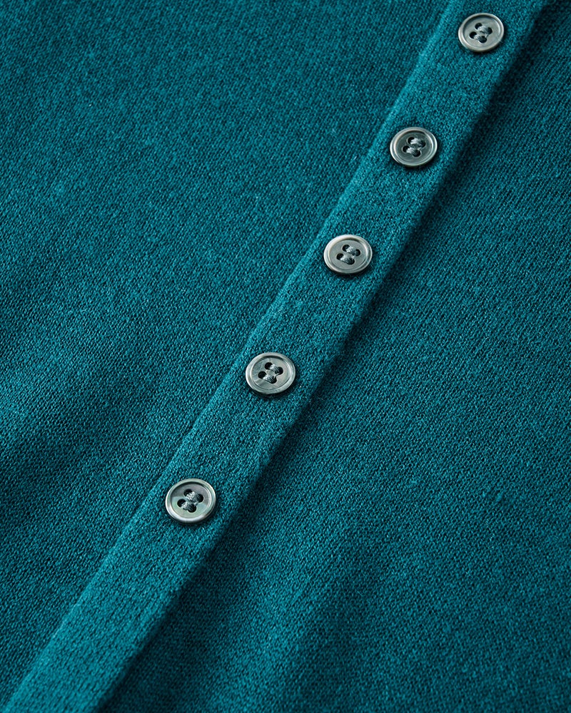 - ニットのワンピースですが、薄手なので軽くゆったりしていて、体のラインを拾わないので楽に着ることが出来ます。普段は黒を着ることが多いですが、たまにはこんなきれいな緑も良いですね。クリスマスに着ようと思います。