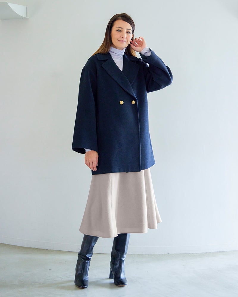 ウール混の生地でとても暖かく、スカートのラインも綺麗です。ウエストサイズからもう少し大きめかと思いましたが、意外とぴったりしたサイズ感でした。
