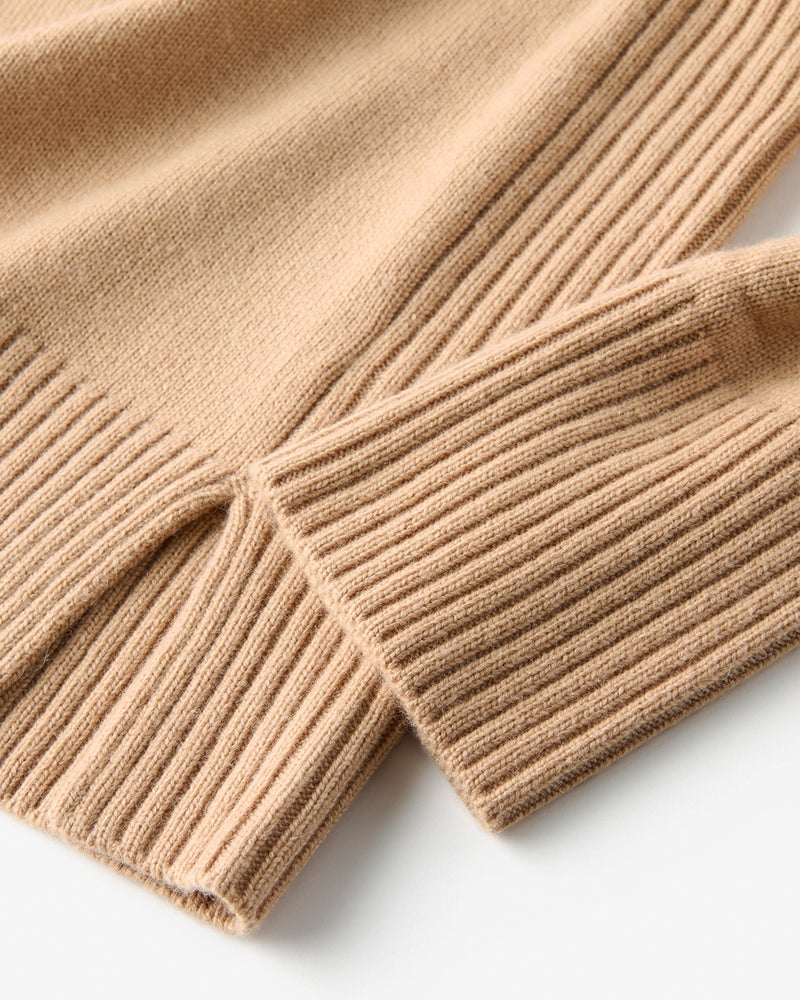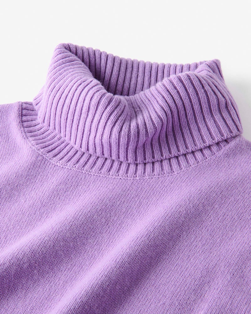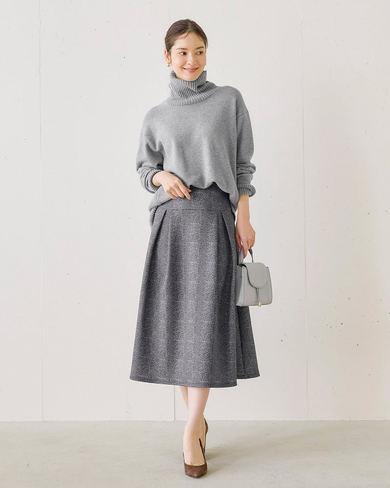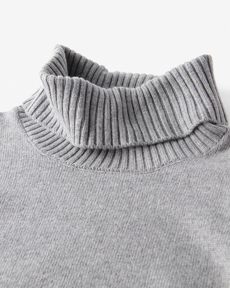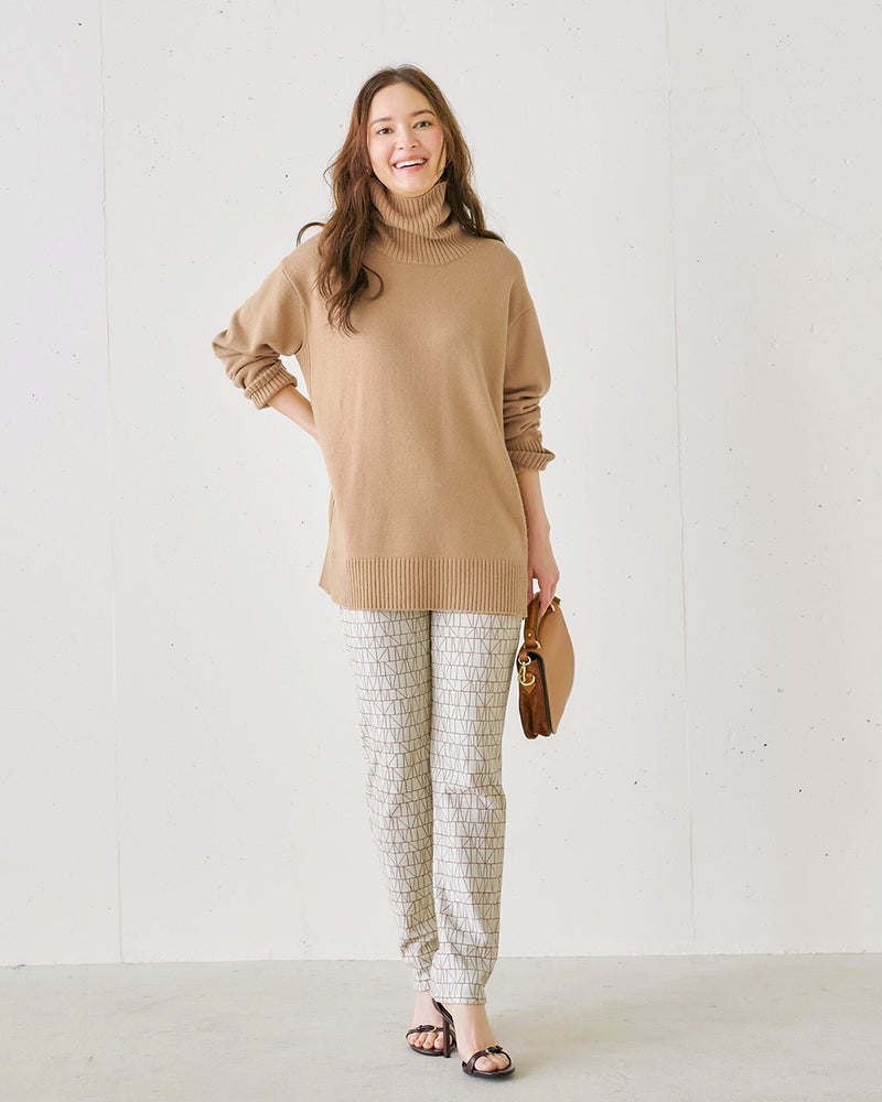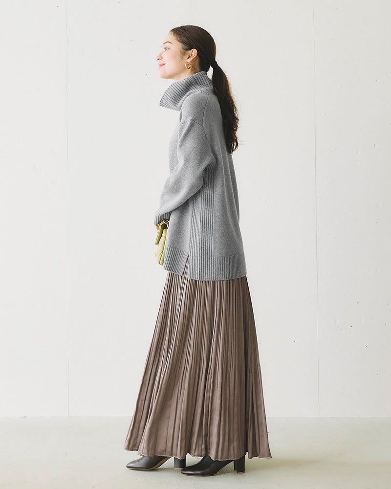折り返してもタイトにならず、くしゅっとしてもキマるよう、編み方に工夫をしたオフタートルネック。