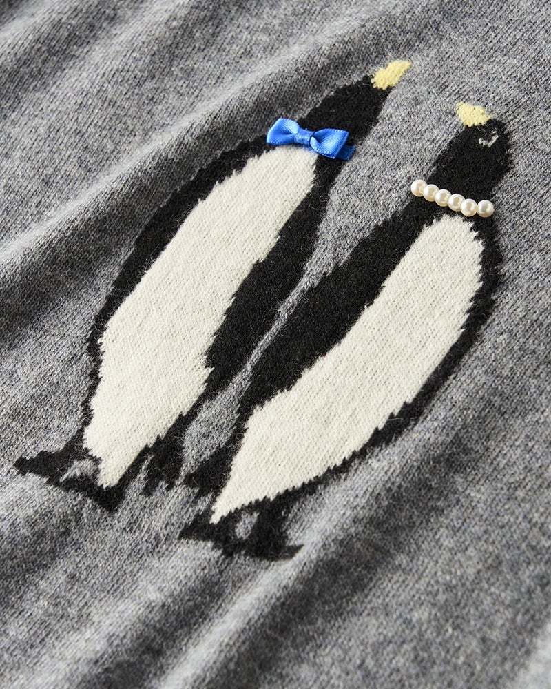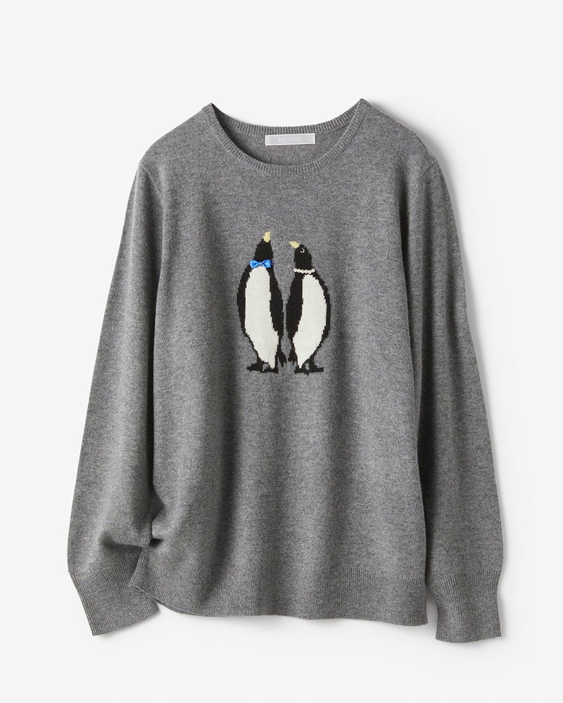 「それ可愛い!」と行く先々で笑顔を呼ぶ、フレンチブル&ペンギンのモチーフニット。繊細な柄表現が叶うインターシャ編み&ビジューやリボンの贅沢ディテール仕立てで、キュートなニットに上質感もプラス。 <