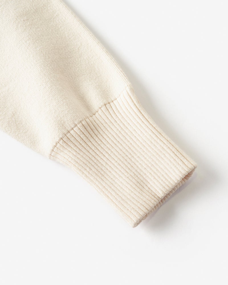 コットンとポリエステルを混紡して緻密に編み立てた、ハリのあるニット仕立てのセットアップ。体型を拾わず、リラクシーに着こなせる「ラク」「きれい」が同時に叶う優秀アイテムです。