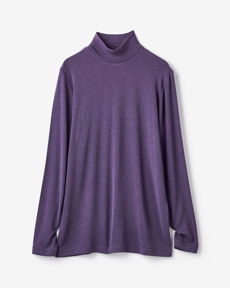 ニットの下に着る為に購入しました。タートルネックだと、首が窮屈に感じる事があるので、ハイネックがよいかなと。
