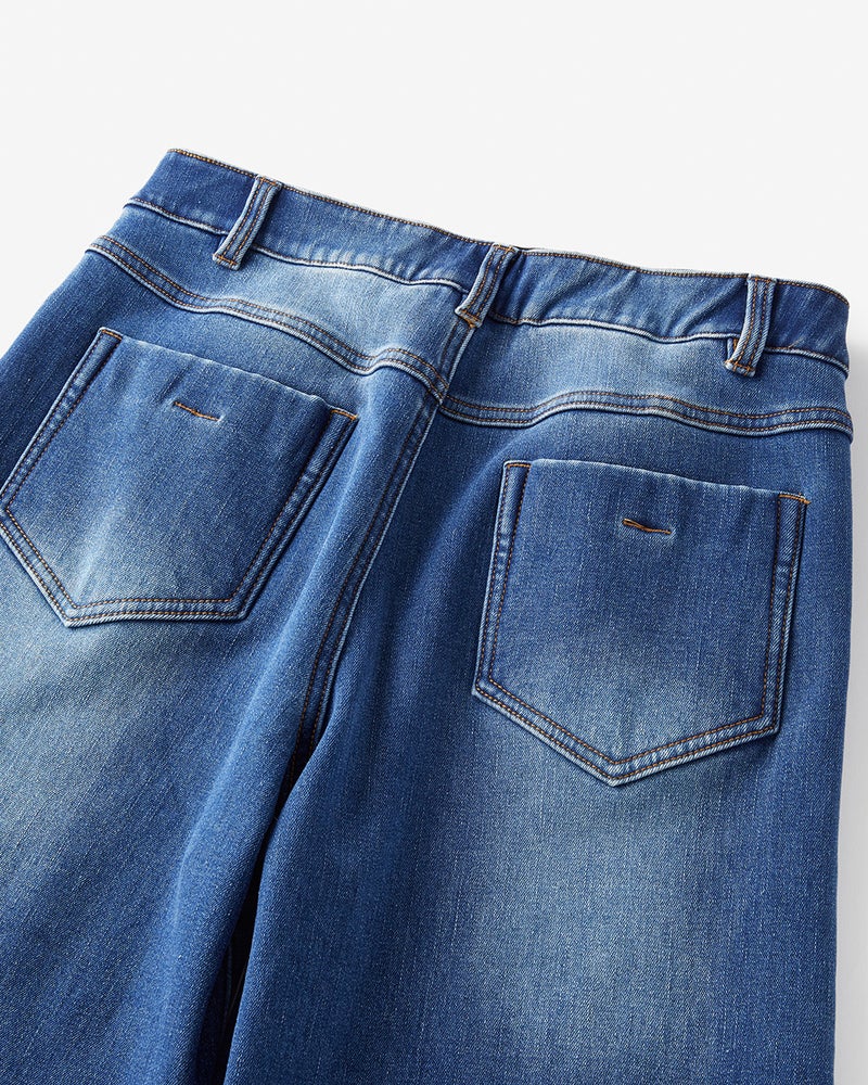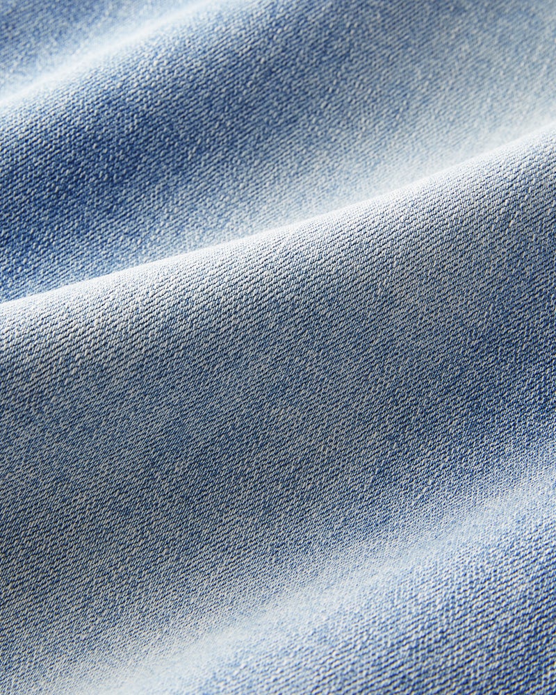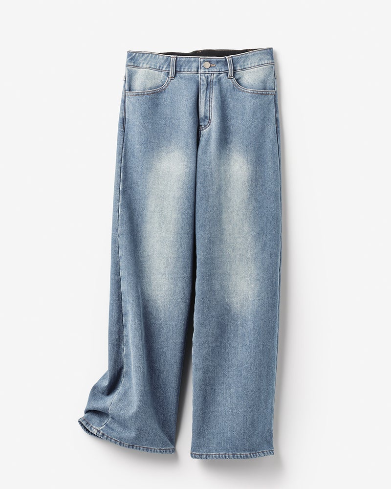 伸縮性の高いカットソー素材ながら、まるでリアルデニムのような色落ち感を繊細に表現。はき心地のラクさとデニムの雰囲気の、いいとこどりを叶えました。