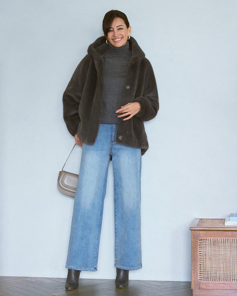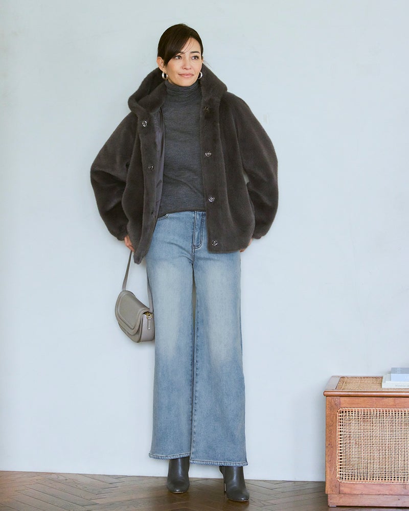 セミワイドなのでアウターは短かめのダウンを着て厚底ブーツを履いてます。そのデニムどこで買ったの?と聞かれてカッコいいと誉められましたよ。インディゴも欲しくなりました。