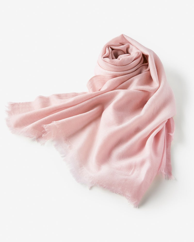 - 薄手で柔らかいけれどやや張りがあるので巻き易い。もう少し明るい青みのあるピンクだったら良かったがグラデーションになっているので単調にならない点がいい。装いや気分によってベージュを多めに見せたり楽しめそうです。軽くて嵩張らないので持ち運びに便利。