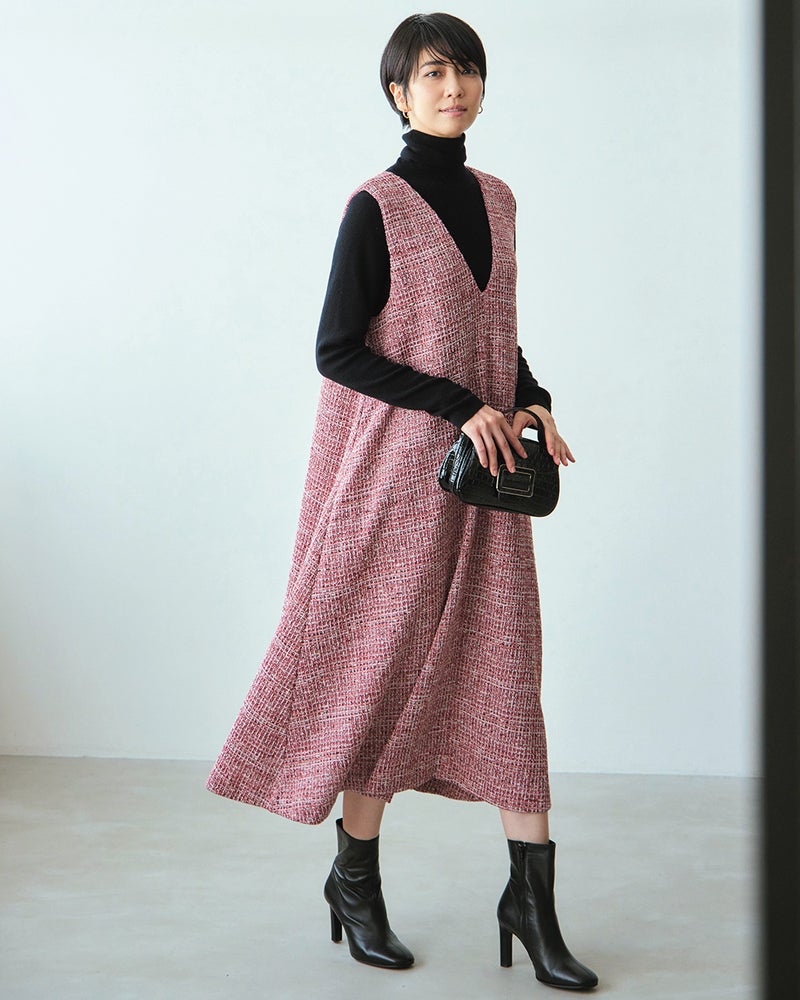 ツイーディジャカード・深Vネックジャンスカ