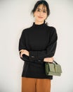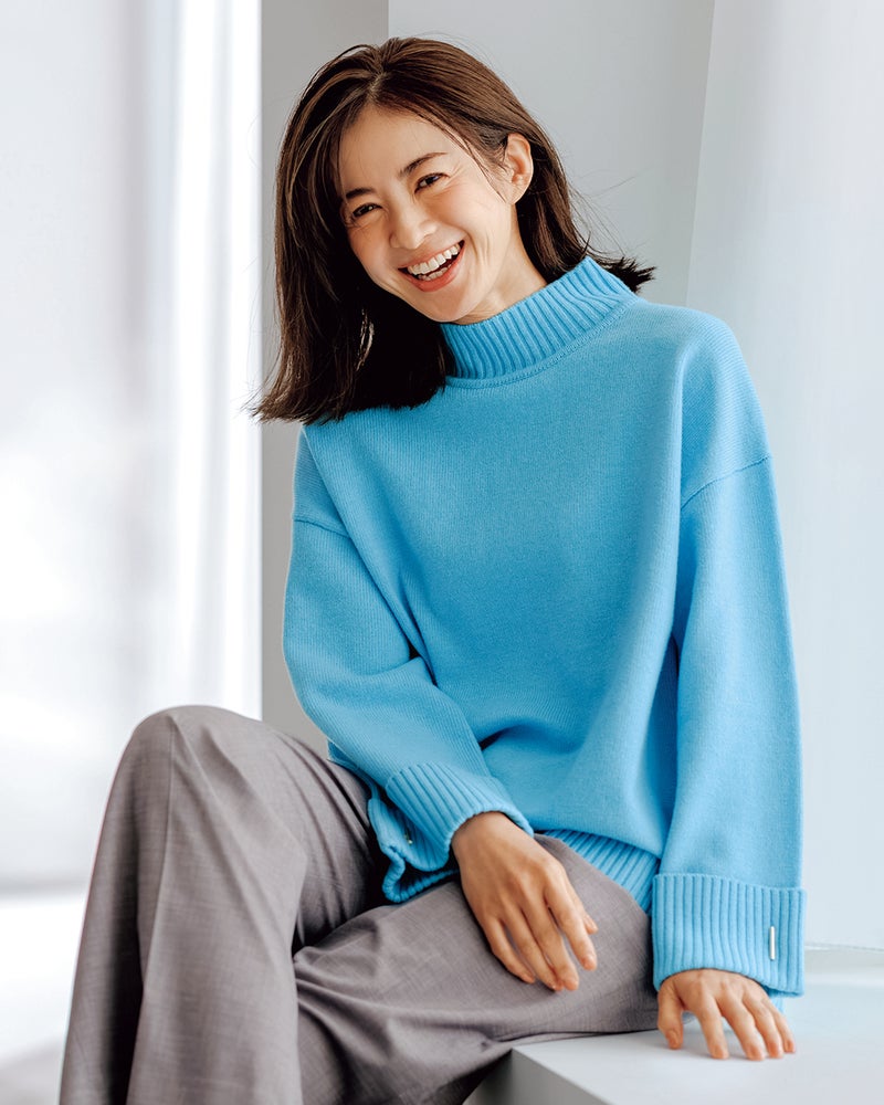 コートの中でかさばらないすっきり感とぬくもりを両立した、ウール混の中厚ニット素材。