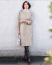 - 薄いグレーで体系を気にしなくてもいい素敵なワンピースです。中に黒や濃いグレーのシルクフイール・ダブルカフスハイネックと合わせるととてもおしゃれでいいですね。