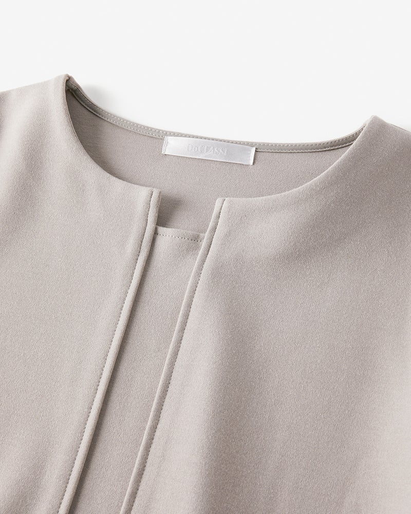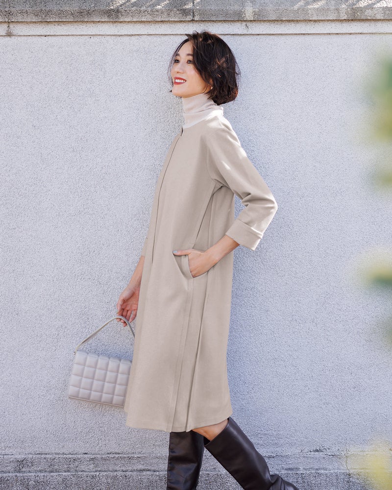 襟元の空きが綺麗で冬場はハイネックのインナーと合わせて着ても色々楽しめます。