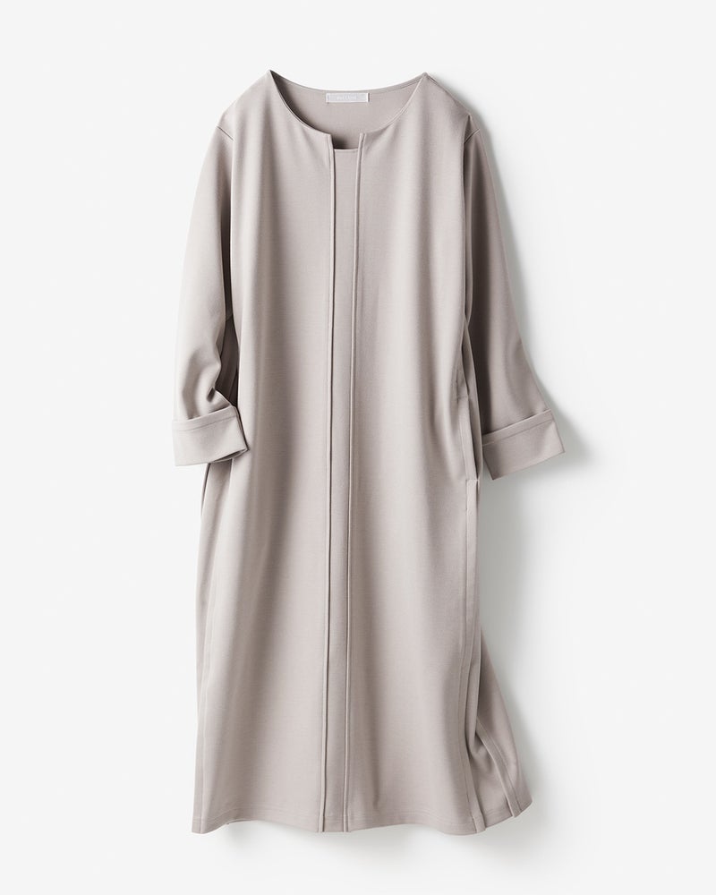なんともシックな色合い。丈もちょうどよく、襟元のデザインも洒落ています。ゴールドのロングネックレスをして、ベージュのジャケットを合わせたら「秋らしくてシック!」とほめられましたが、冬にも春にも出番が多そうです。サックドレス風ですが程よくフィットしてきれいなライン。生地もしっかりしていて、まさに「お値段以上」。良い買い物をしました。