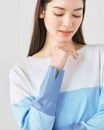 - ブルー•パターンとアイスブルーのSを購入しました。柔らかい生地なのにしっかりした質感とサラッとした肌触りで着ていてとても快適です。また、肩からの落ち感も自然で素敵です。ブルーパターンの方はボートネックの襟のラインとマッチして粋な感じを演出してくれます。この春重宝しそうです。