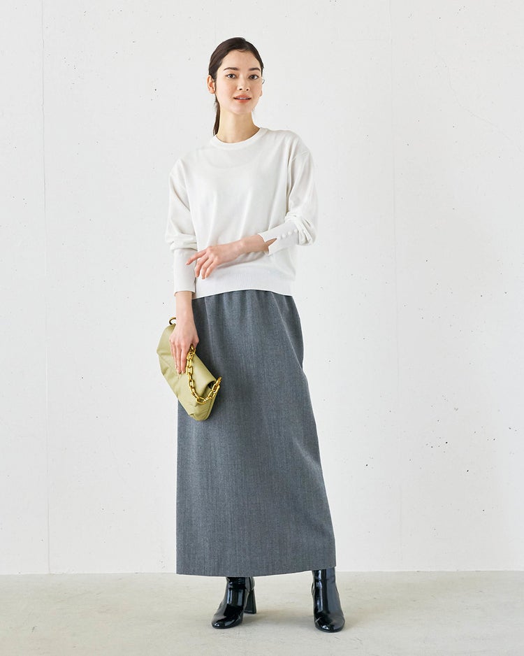素肌にさらっと着られるなめらかなハイゲージニット。どんなスタイルとも相性の良いクルーネックで、カットソーよりも上品見えしながらもストレスフリーな着心地は、毎日つい手に取りたくなる心地良さです。