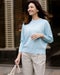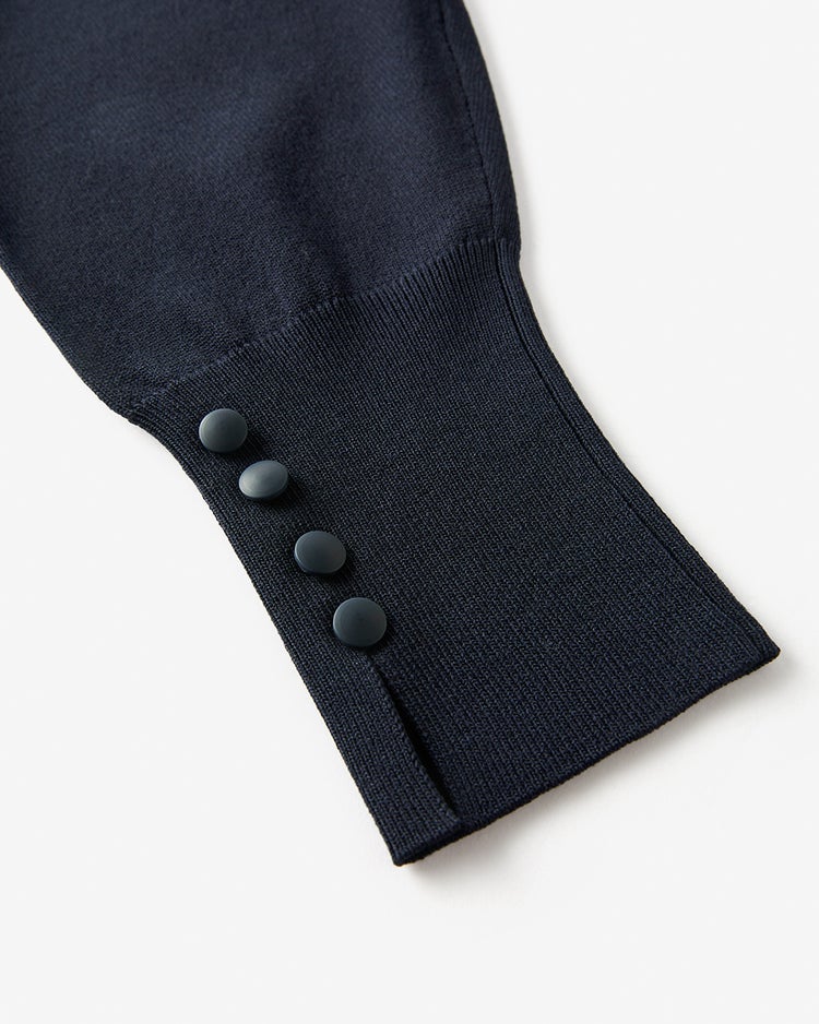手もとにさりげないデザインをプラス袖口にあしらったスリットとボタンデザインが、手もとを女性らしく華やかに彩ります。