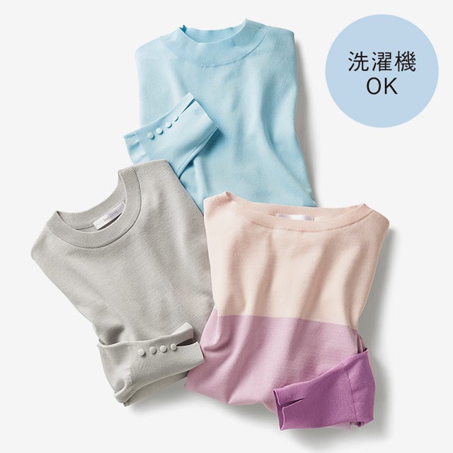 柔らかな着心地でもボディラインを拾わないストレッチ糸を添えて編むことで柔らかな着心地だけではない、きちんと見えするハリ感をプラスしました。
