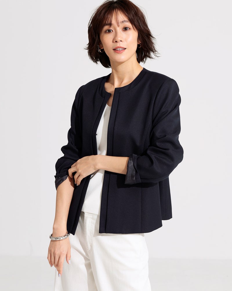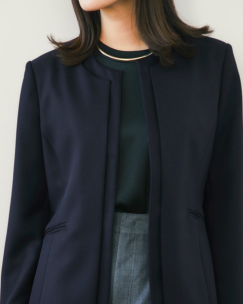 • スマートツイル・ノーカラーペプラムジャケット 詳細画像 ミッドナイトブルー 10
