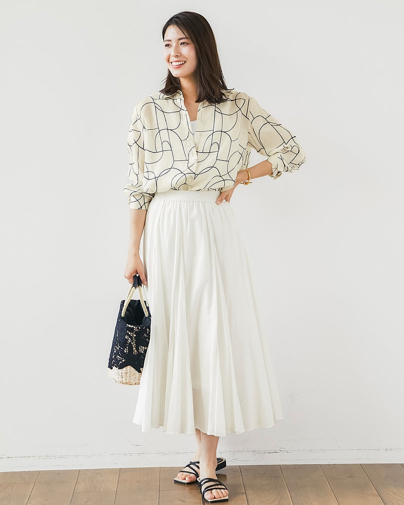 柄アイテムコーディネートのポイントにロング丈でもウエストINでも素敵に
