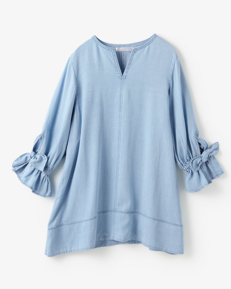 • メルティーデニム・リボンスリーブチュニック 詳細画像 ライトインディゴ 1