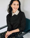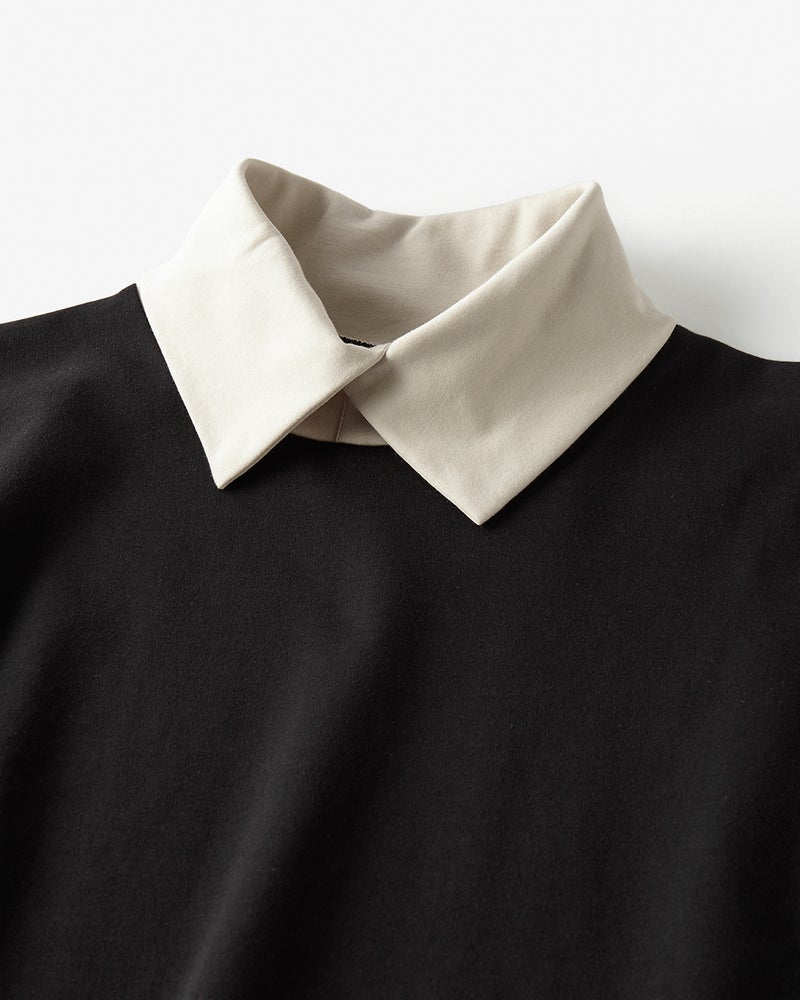 - 襟がハイネックを折り返すと襟付きになるという感じなのですね。だから重なって見えたのね。普通の襟付きだと思っていました。