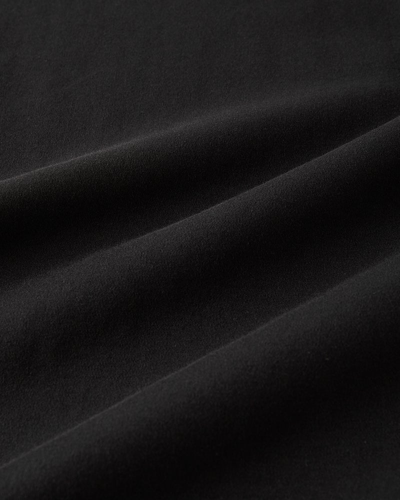衿付きハイネックがデザイン性があり、綿素材でも高級感があります。