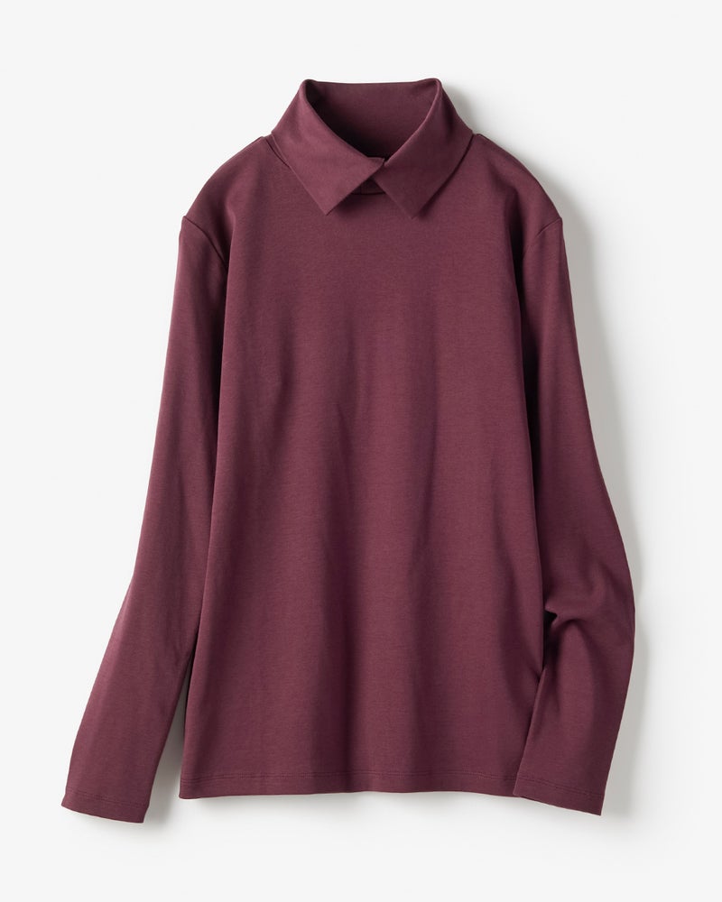 見かけない襟デザインで 人前でもキチンとした印象があり、ジャケットの下から襟がのぞいても具合がよいです。春先に重宝すると思います。