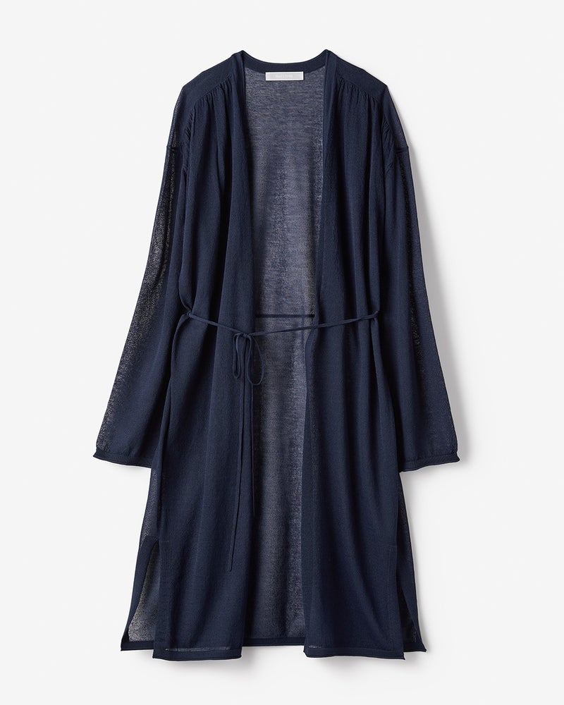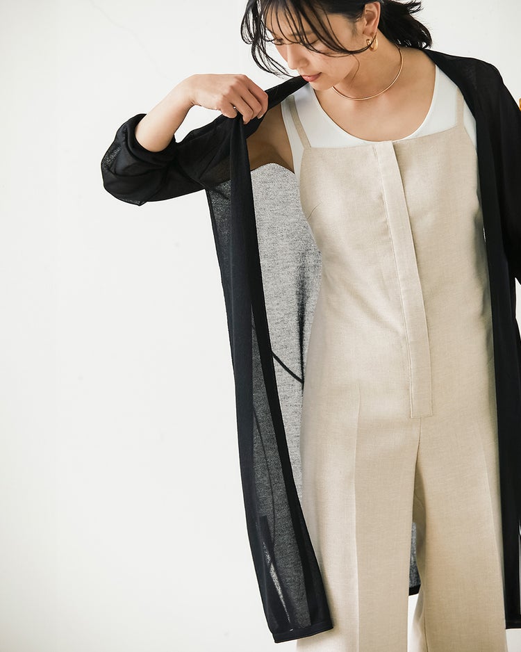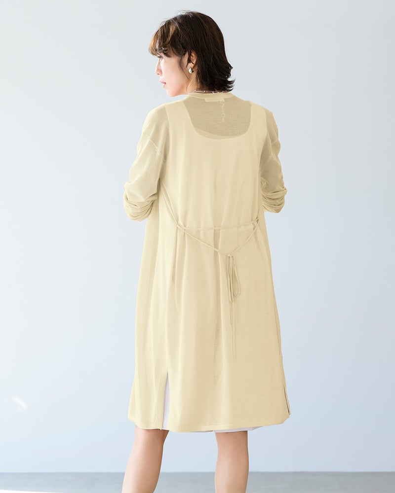 - ボタンレスで軽やかに羽織れるロング丈サッと羽織れるボタンレスの着流しデザイン。膝上のロング丈は、同素材の細ベルトを締めてきりっとウエストマークの着こなしも可能。