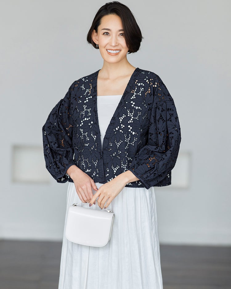 ショート寸が脚長に見えますし、袖にボリュームあってもカットワークで軽やかです