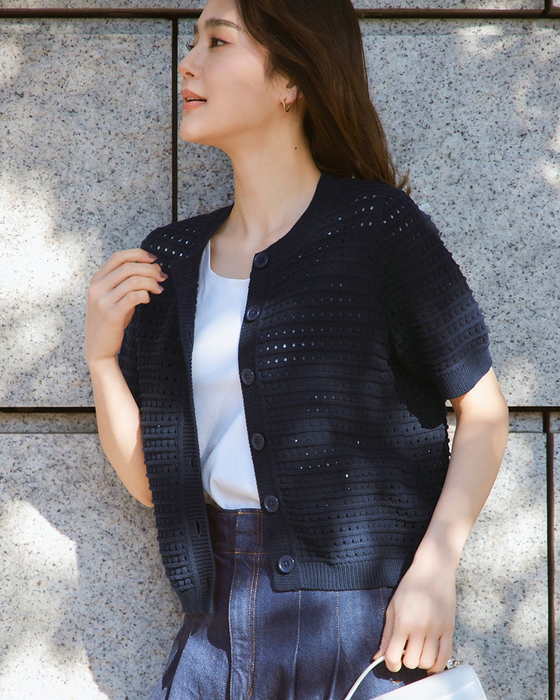 スクエアメッシュニット・半袖カーディガン