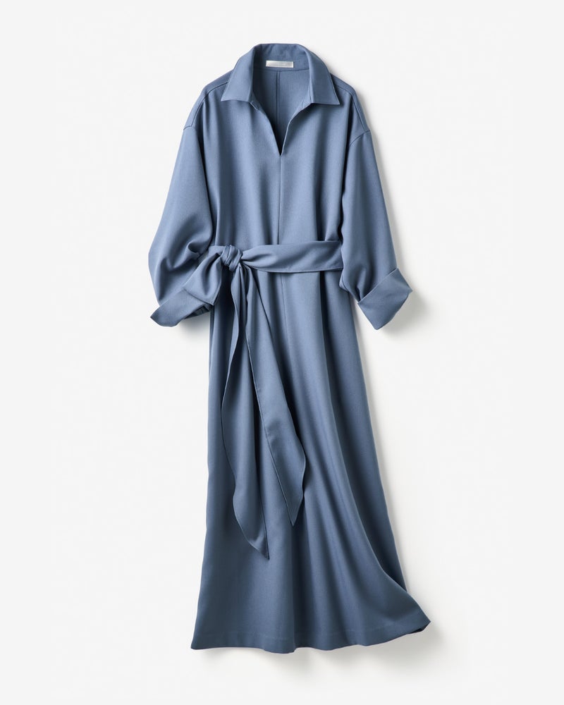 - 体重45キロで、7号を購入。いつもDoCLASSEさんの7号のワンピースは「大きめ」ですが、今回の商品はサイズ感がぴったり。色はミッドナイトブルー。写真通りのお色です。首を通して着用するので、メイク後の着脱は注意が必要です。裏地がないので、ペチコートを着用した方がいいかも。しわになりにくそうな布地です。ネーミングにある「とろみ」はあまり感じません。スカートのボリュームがないので地味な印象がありますが、仕事着として気軽に活用できるワンピースです。ウエストのリボンを付けると、おしゃれ度がアップします。