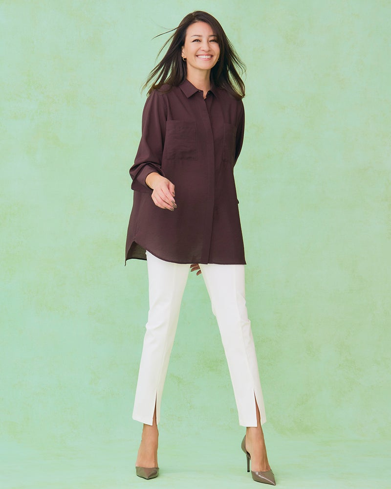品格ストレッチポンチ素材グンと伸びてダレにくい、キックバック力に優れたポンチ素材。表面をなめらかに加工することで、布帛のようなほのかな光沢を叶えました。 - THE PANTSとは?まろやかな曲線を描く女性の身体。体重の増減に関わらず、徐々にこのカーブも変化してくもの。それが多くの大人の女性たちが感じている、「太ったわけではないけれど、なんだか今までのパンツがしっくりこない」の理由のひとつ。
