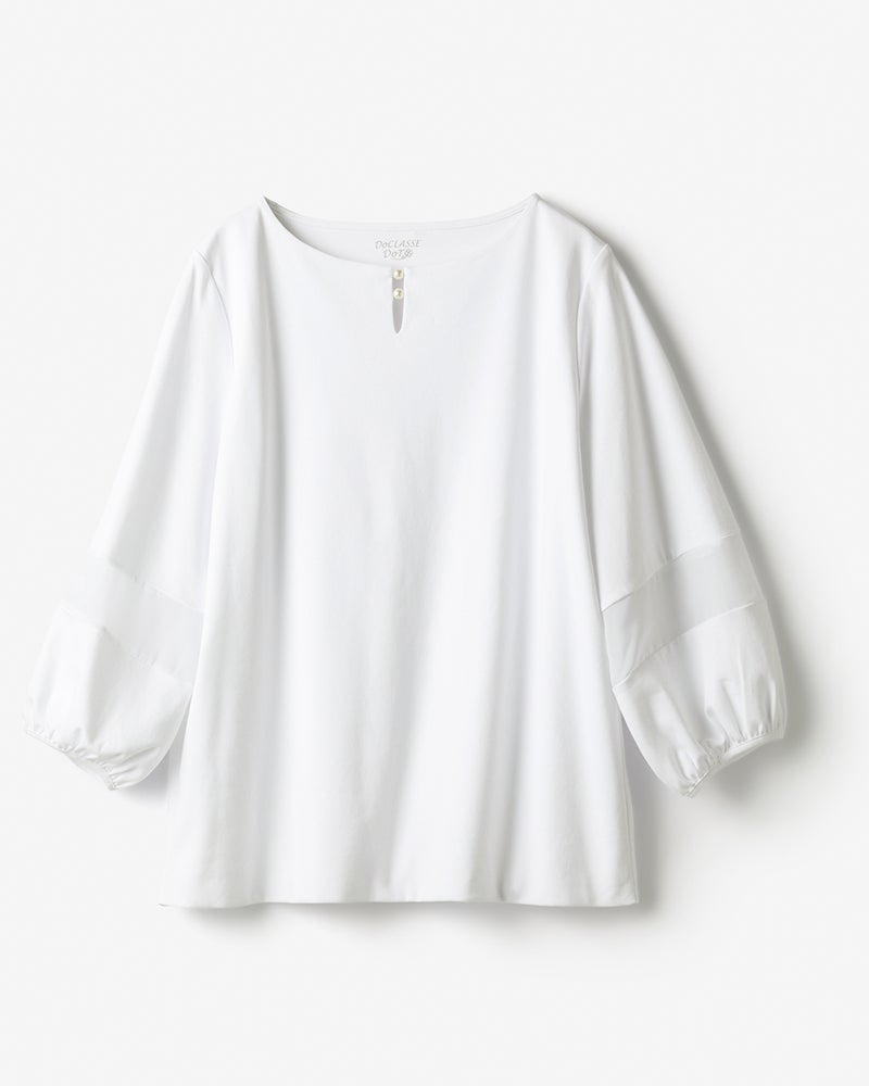 • パールキーネック/7分袖・ドゥクラッセTシャツ 詳細画像 ホワイト 1