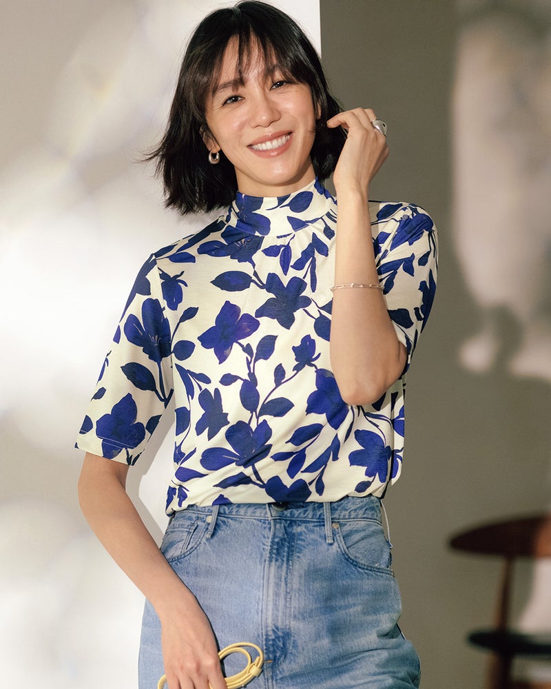 - プリントの柄が爽やかでハイネックのバランスが良い