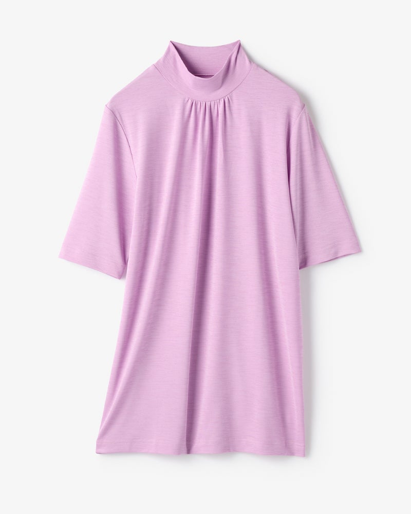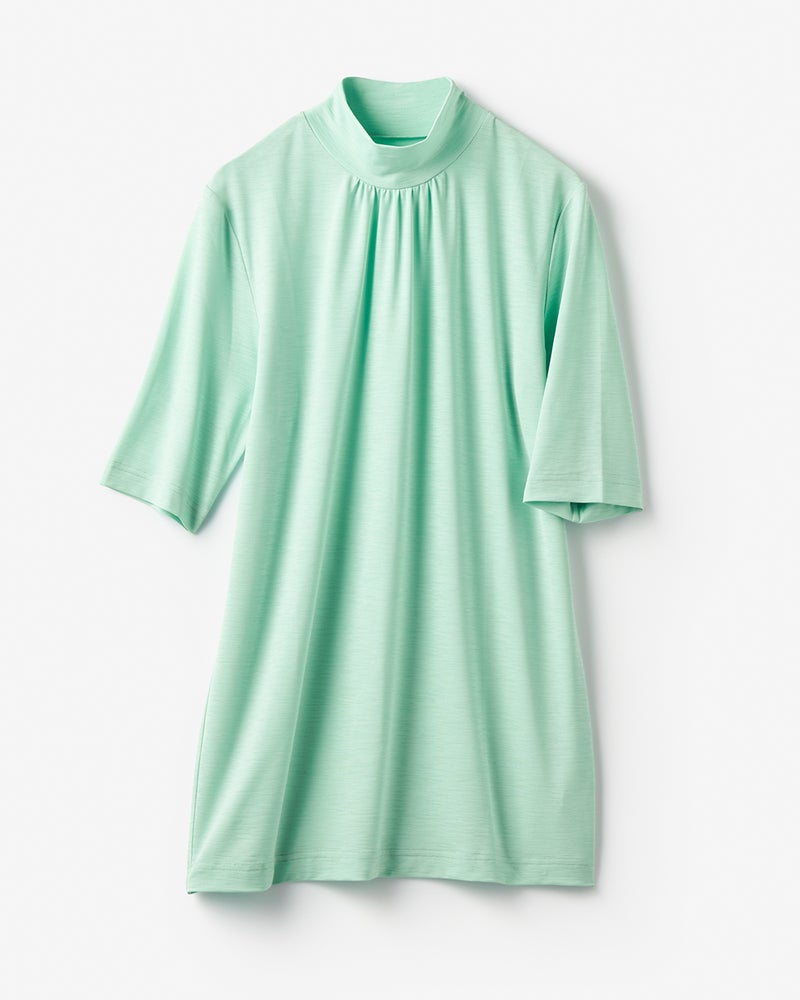 UVスラブ・ギャザーハイネックブラウスN/5分袖