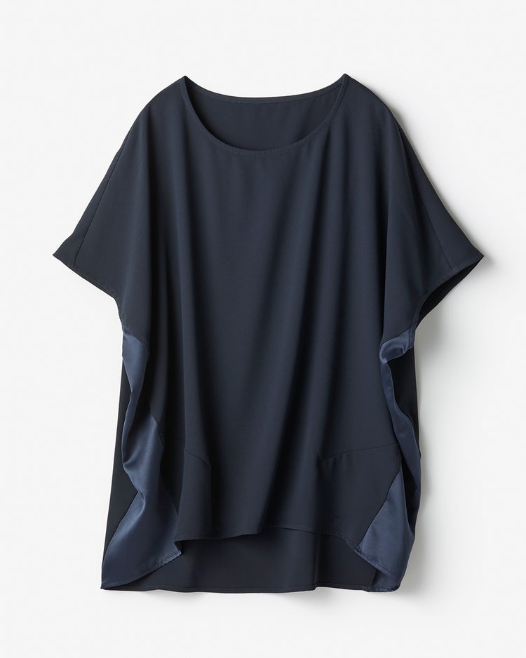 普段のサイズ:M 着用サイズ:M or L- 女性らしさを引き立てるトロミ感のあるシンプルなデザイン。サイド部分のサテン生地切替や、背中の切り替えもアクセントになっています。 スカートにもパンツにもこれ1枚でエレガントな装いになりそう。合わせやすいカラー展開でシワにならず手洗いできるのも嬉しい!