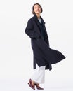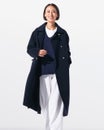 毎年ご好評いただくウールリバーコートが、100%ウール素材に進化しました。1枚仕立てながらふっくらとなめらかなピュアカシミヤウールリバー素材は、ロング丈でも軽い着心地が嬉しい。メンズライクにかちっと仕立てたダブルブレスト×やや細身のシルエットなら、今季注目のトラッドな着こなしにもぴったり。ボタンの仕様は本体カラーによって2タイプ、金ボタンなら品格のあるトラッドに、同色ボタンならオフィスにも似合う上品シンプルなスタイルに。