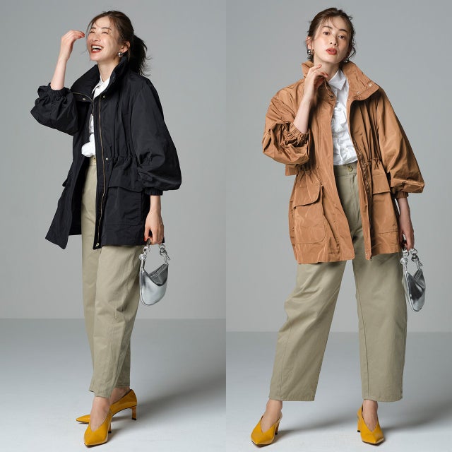 ウエストはドロスト仕様で、お好みのシルエットに調節が可能です。アンブレラヨークで、バックスタイルにもメリハリをプラスしました。