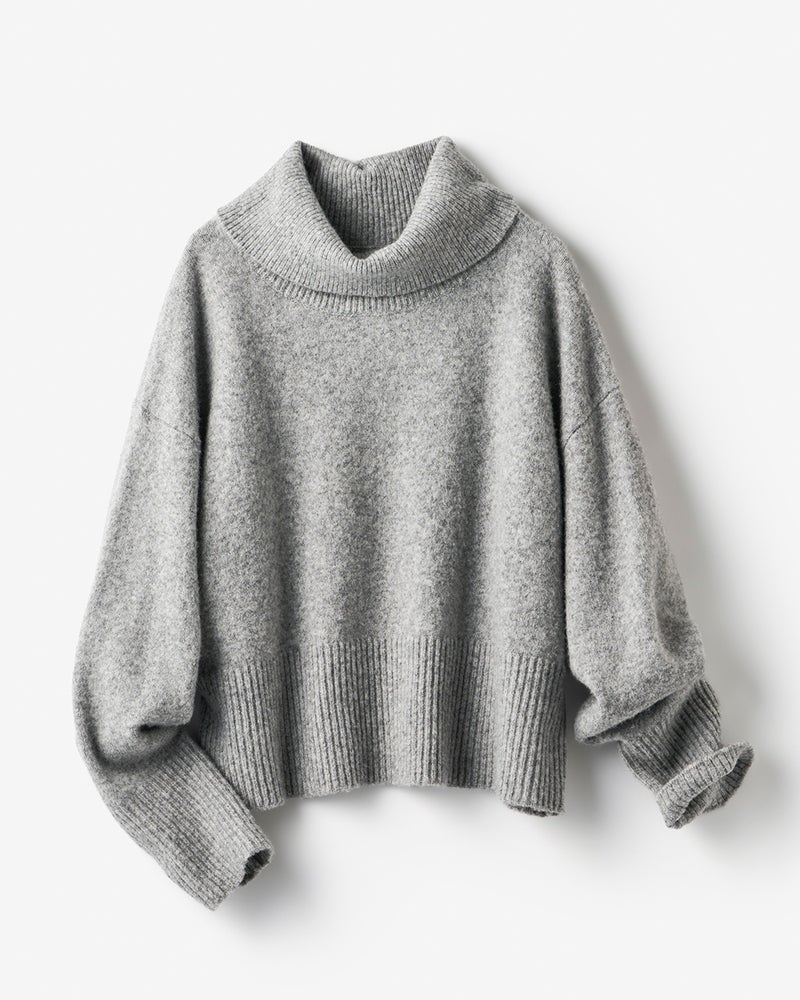 ふんわりもちもちの着心地と確かなぬくもりを両立した人気のニットシリーズ「ウール混タム」。秋冬のお洒落に欠かせないタートルネックを、スタイルアップを叶えるメリハリデザインに仕上げました。ゆったりした身頃×やや短めのクロップド丈で小柄さんもスタイルアップ、高めのタートルネックはくしゅっとさせてニュアンスのある着こなしに。