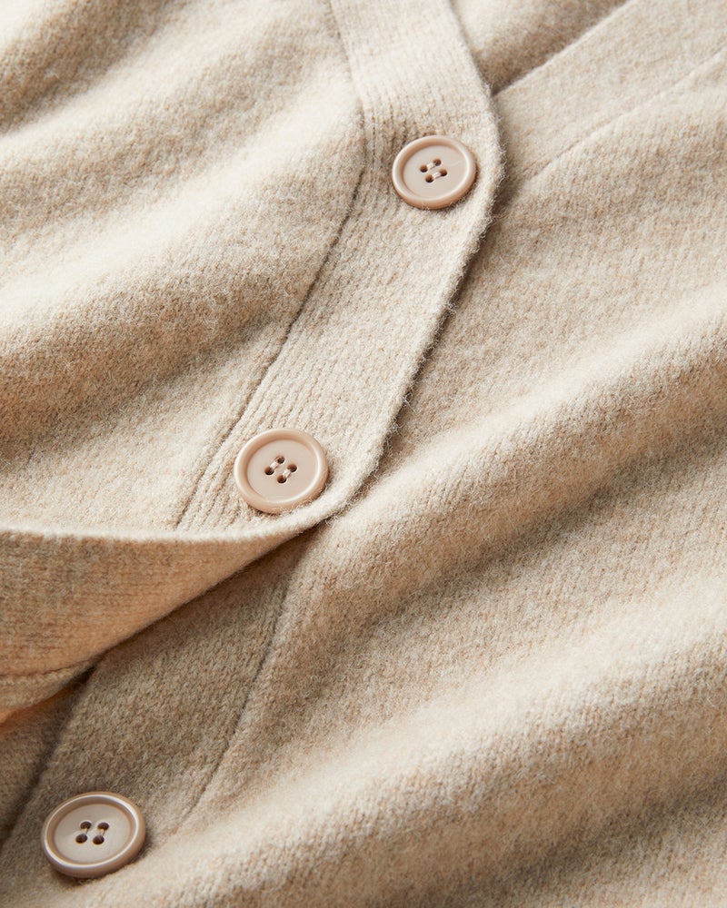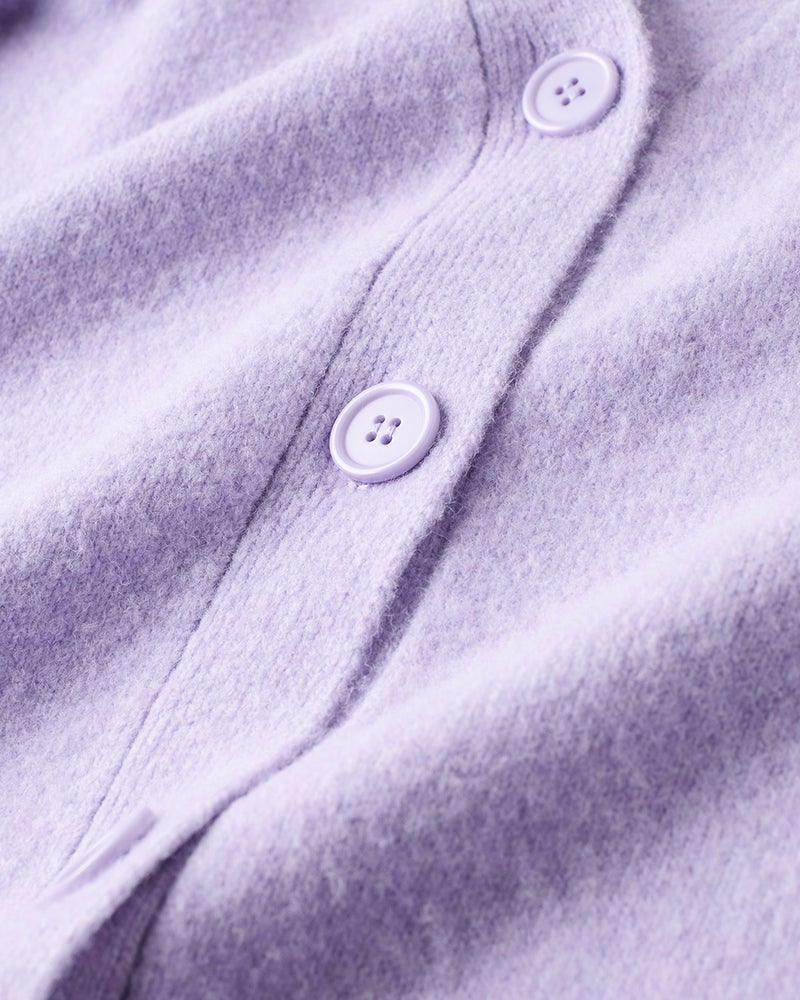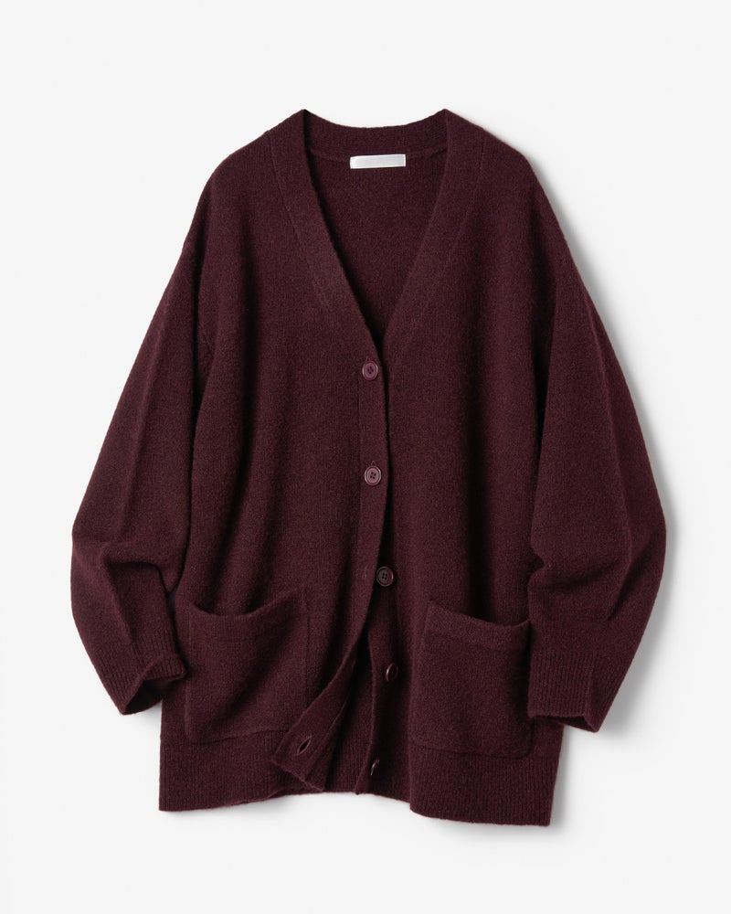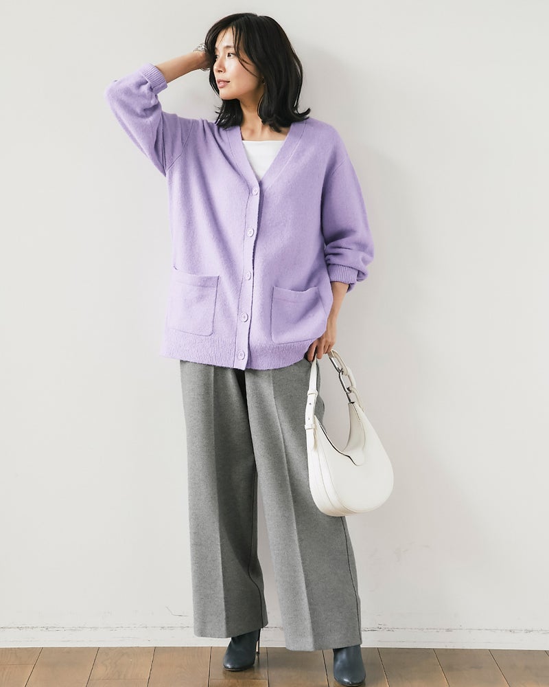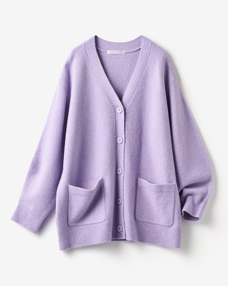 - 同シリーズのタートルネックロングニット、ハイネックニットを購入し、その滑らかな肌触りの虜に。今回はカーディガン(ライトグレー、S/M)を購入しました。小柄で痩せ型の私にはかなり大きめですが、コート替わりに着てもよいかと。とにかくフワフワで心地よく、手放せなくなりそうです。毛玉ができそうなので、しっかりお手入れして着ようと思います。何にでも合うライトグレーを選びましたが、鮮やかなピンクも素敵!追加購入を検討中です。