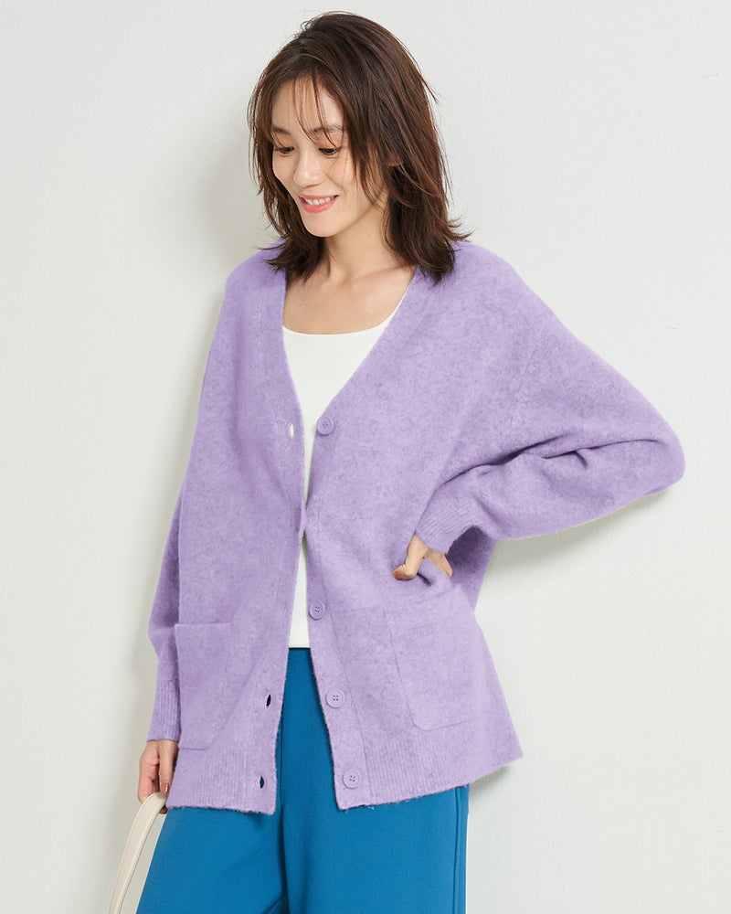 • ウール混タム・Vネックカーディガン 詳細画像 ラベンダー 1